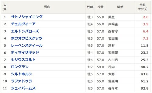 今回の出走予定メンバーでは、ジェイパームス、チェルヴィニア、ラファドゥラの4頭です。