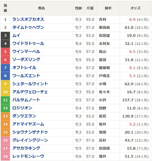 フルゲート18頭が集まり、抜けた存在も不在の混戦メンバー。