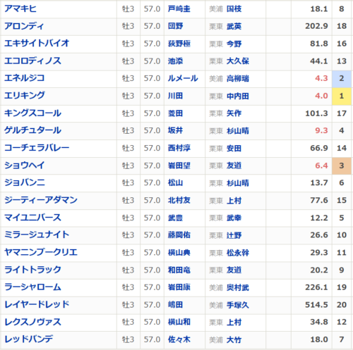 菊花賞も皐月賞、ダービー共に勝ち馬の