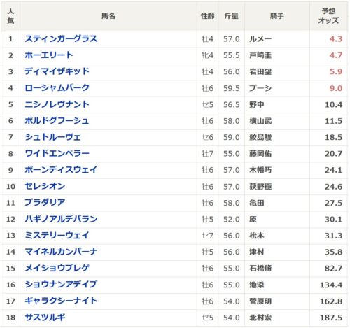去年はハンデ戦ながら58キロと58.5キロで決まったので斤量が重いからという理由で評価を下げる必要はなさそうです。