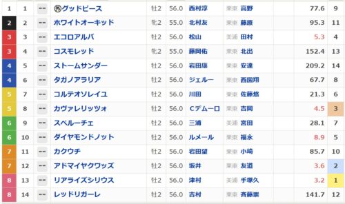 京王杯勝ち馬は無視するわけにはいかず先行して3馬身差での圧勝ということもあり連下にはとどめておきたいところです。