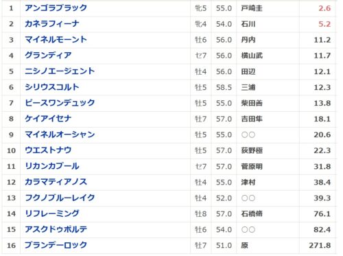 勝ち馬は5番人気以内、2着馬は5から8番人気の間(過去10年中9年で該当、現在7年連続)、過去10年の連対馬20頭全てが8番人気以内という傾向。