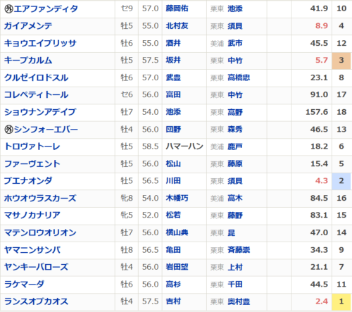逃げ・2~3番手の馬が粘り込み