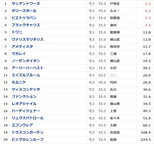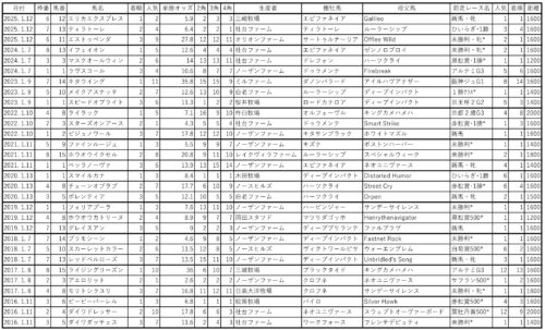 関西馬はあまり出走してこないレースなので前走は東京、中山コースがほとんどです。
