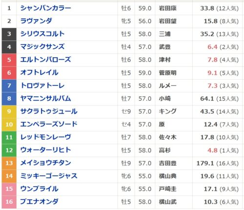 抜けた人気になると思っていたウォーターリヒトがそれほど人気になっておらず執筆時点ではこちらが1番人気。