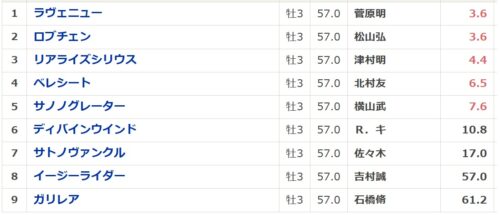 そして2番人気も1勝のみで2着なし。ラヴェニューにとってはさらに不吉なデータです。