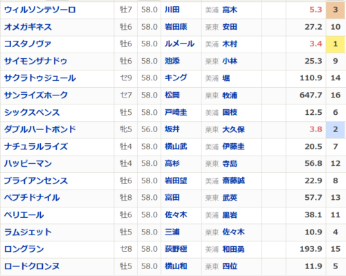 3番人気想定がウィルソンテソーロ。