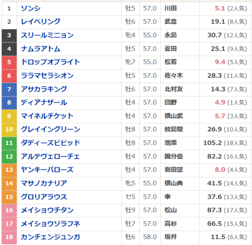 確定枠順です。