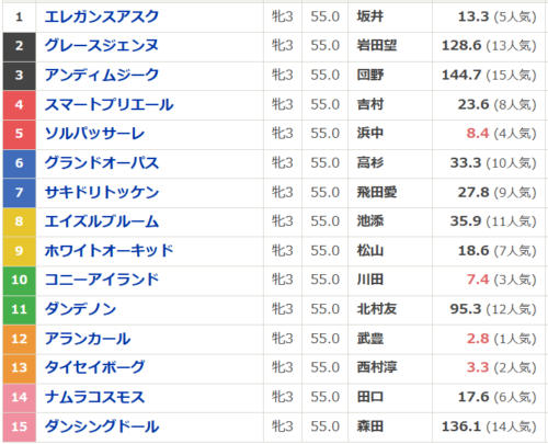 阪神JFの馬券圏内組が出走