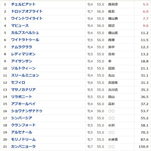 マイル戦からの距離短縮となるクランフォード、セフィロ、ソルトクィーン、チェルビアット、リラボニート、ワイドラトゥールあたりは評価ができるステップとなります。