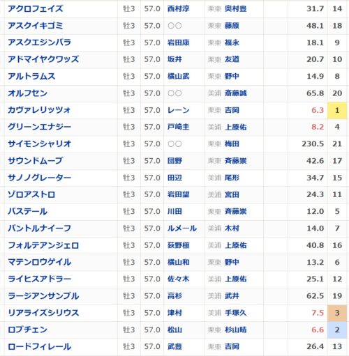 弥生賞組は8頭が3着以内に入っており頭はないものの軽視はできません。