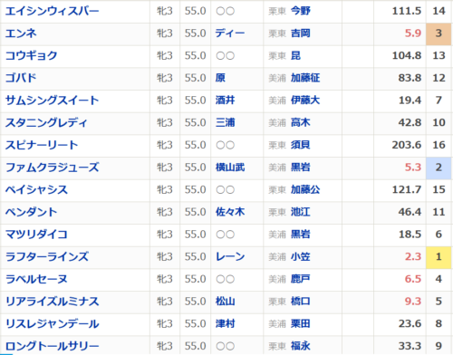こちらが出走確定馬と予想オッズ
