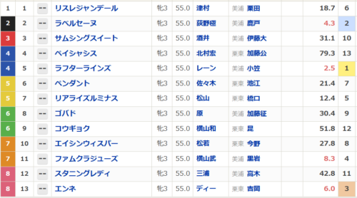 で10番人気6着。